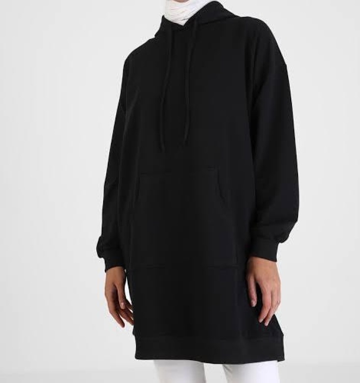 *Doğal ve sağlıklı kumaşlardan (pamuklu), kapişonlu,uzun kullu ve diz üstü boyunda (80-85 cm) siyah renk tunik (fermuarlı olmayacak)